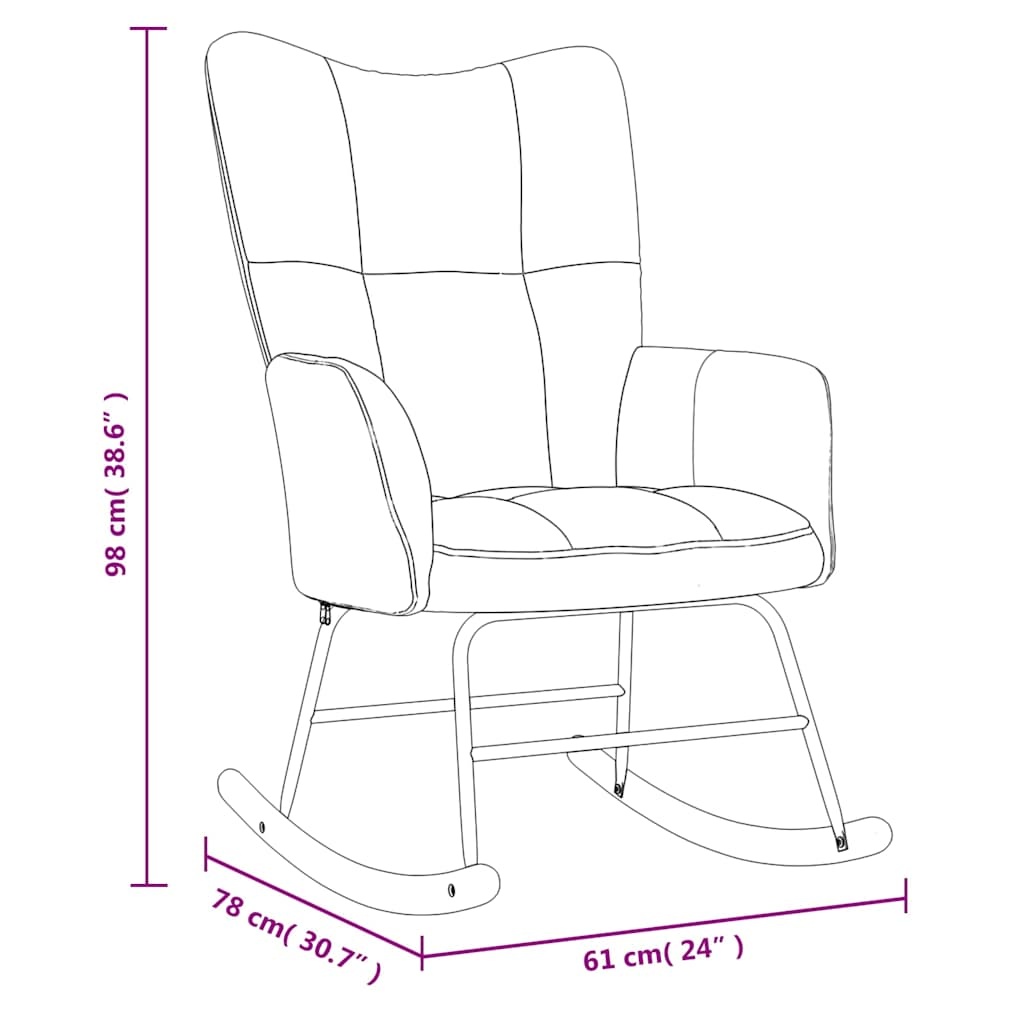 With its chic and elegant design, this rocking chair adds a modern touch to your interior. Thanks to the thick foam padding and soft velvet upholstery, you’ll enjoy optimal seating comfort. The long runners prevent the chair from tipping over easily. Furthermore, the rocking chair is supported by a steel frame and wooden runners, making it stable and durable. Maximum weight capacity: 110 kg per seat. Decorated with square stitching, this chair is aesthetically pleasing.