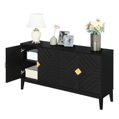 4-door sideboard storage cabinet for living and dining room, two large cabinets with gold handle and adjustable shelves, black