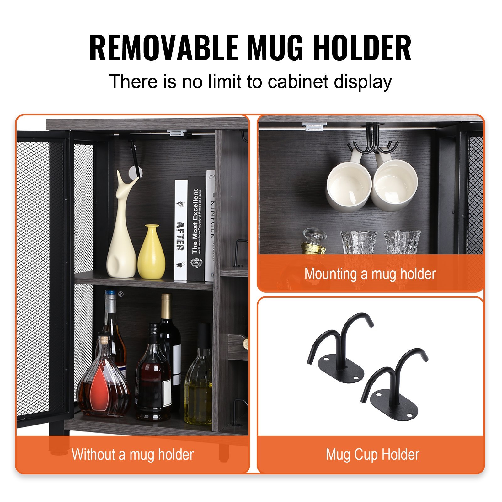 Built-in Outlet: This cabinet has a built-in power strip with 3 outlets and 2 USB ports for added convenience. This allows you to easily charge your coffee maker, bar accessories, lamp, glowing decorations, and other electrical appliances.