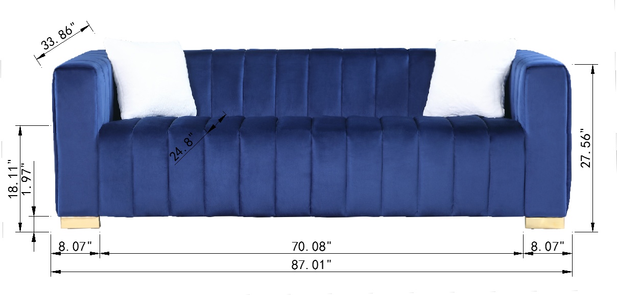 Product Name:A modern channel sofa take on a traditional Chesterfield,Navy blue color,3 seater