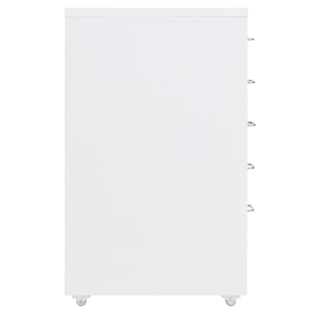 This office cabinet, with its classic filing cabinet design, is ideal for storing files. Made of metal, it is durable and easy to clean. The cabinet features five drawers, and you can insert name tags into the metal handles to keep your files organized into different categories. Equipped with four casters, the cabinet is also easy to move. Thanks to its iconic design, it complements any office décor.