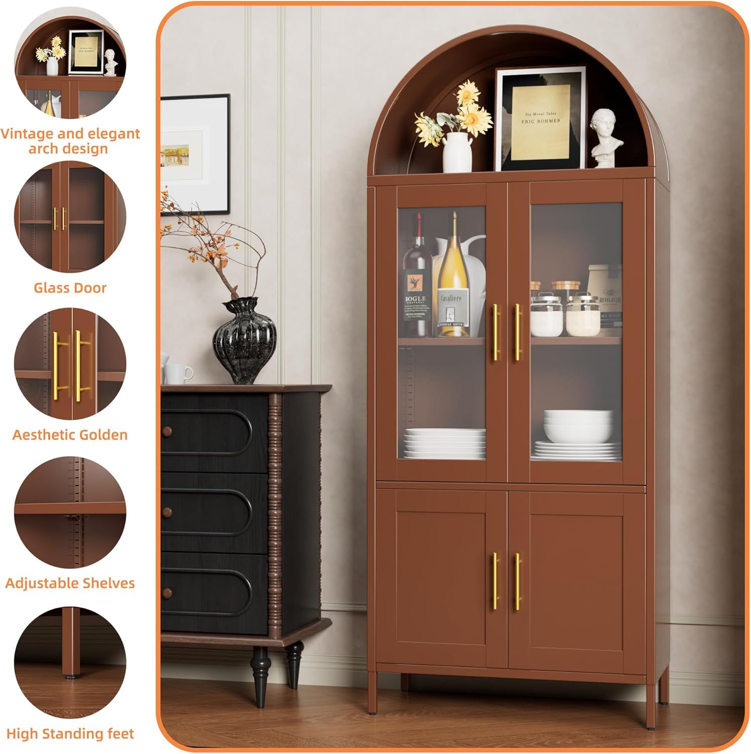 - Effective After-Sales Service—Arched cabinet with glass doors can be assembled quickly with labeled accessories and clear instructions. If you encounter any issues during assembly, the seller will provide a satisfactory solution within 24 hours!