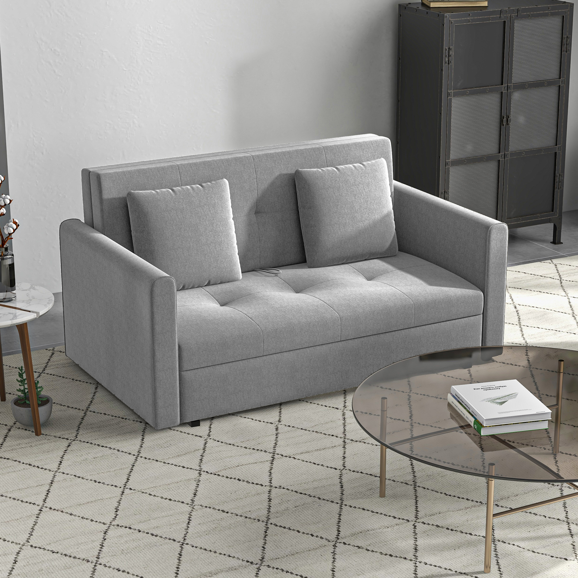 - Loveseat converts into a double bed: great for guests and small homes