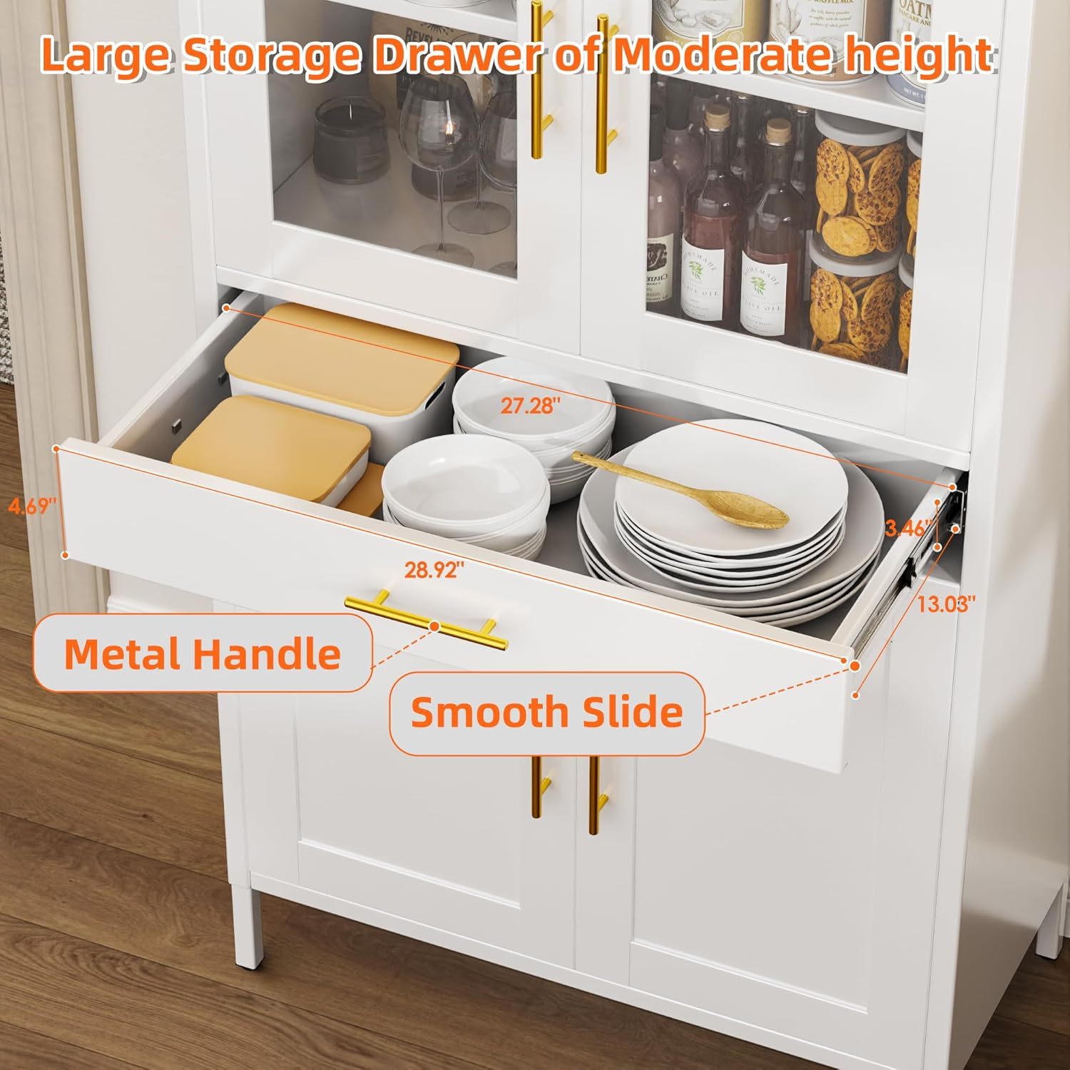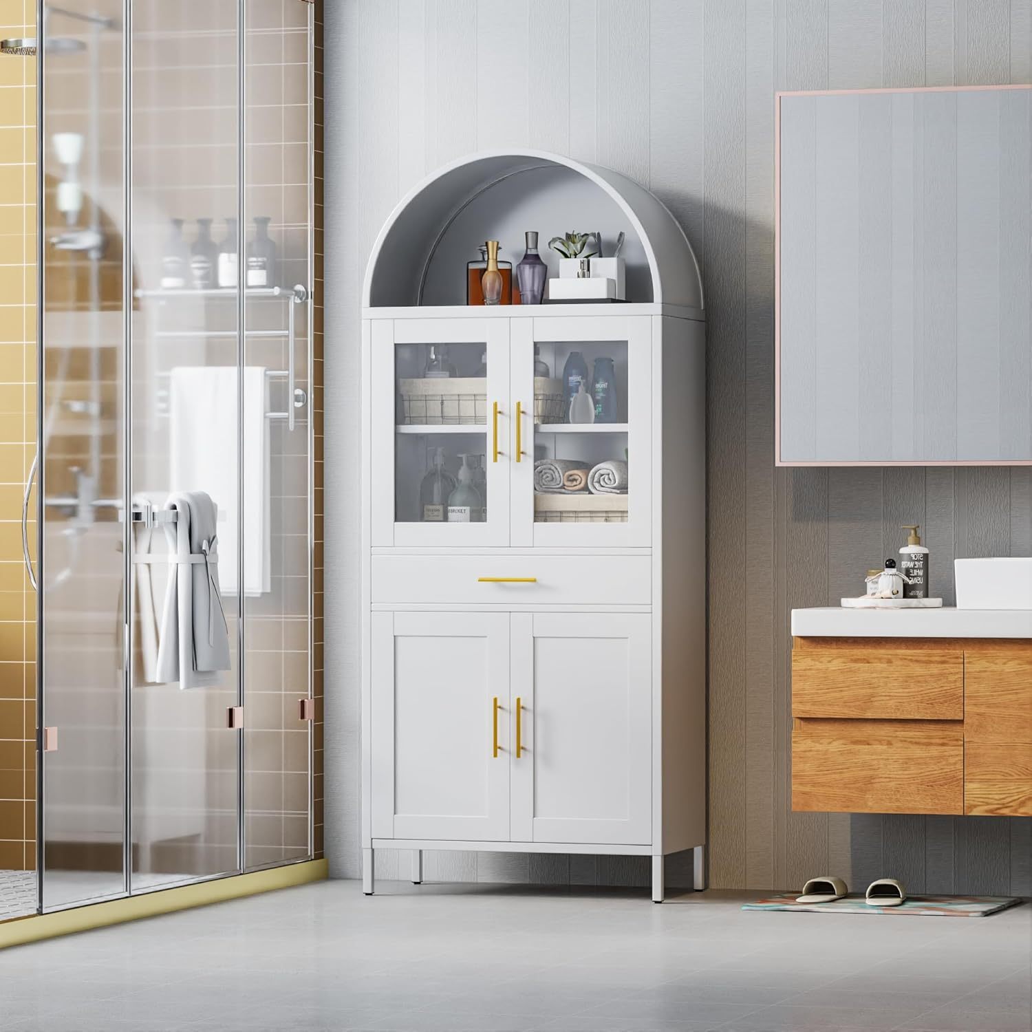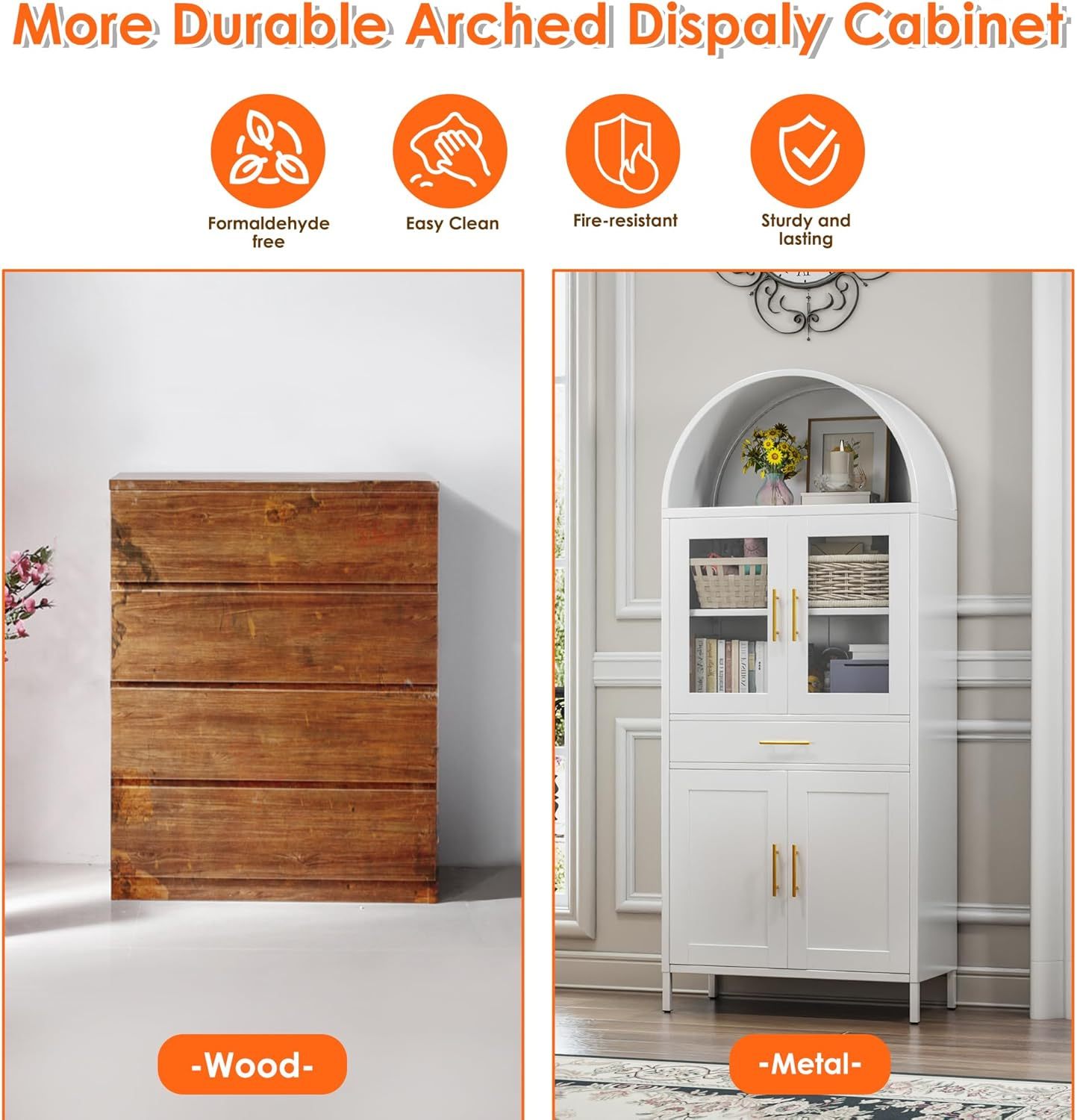 - Ample Storage Space -This modern freestanding arched storage cabinet is designed with large shelves, two drawers, providing plenty of room for all your essentials. Whether you want to display everyday items or store away clutter, this tall kitchen pantry storage cabinet offers multiple options to keep your room organized and stylish.
